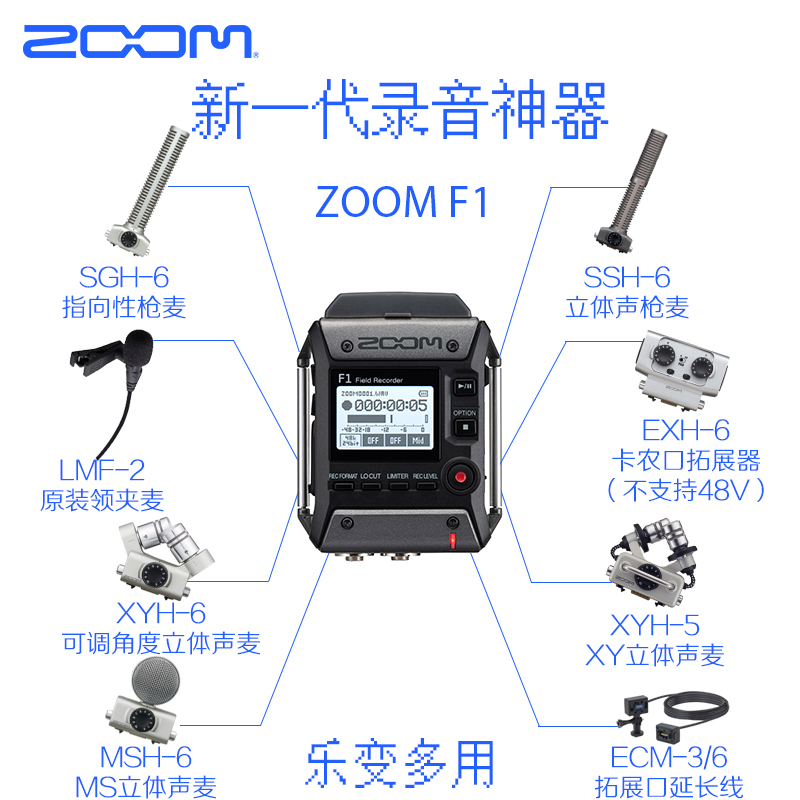 ZOOM F1-SP Music Multi - Use Multi - Use Recording Microphones Modular Recorder Official Chinese 2dv