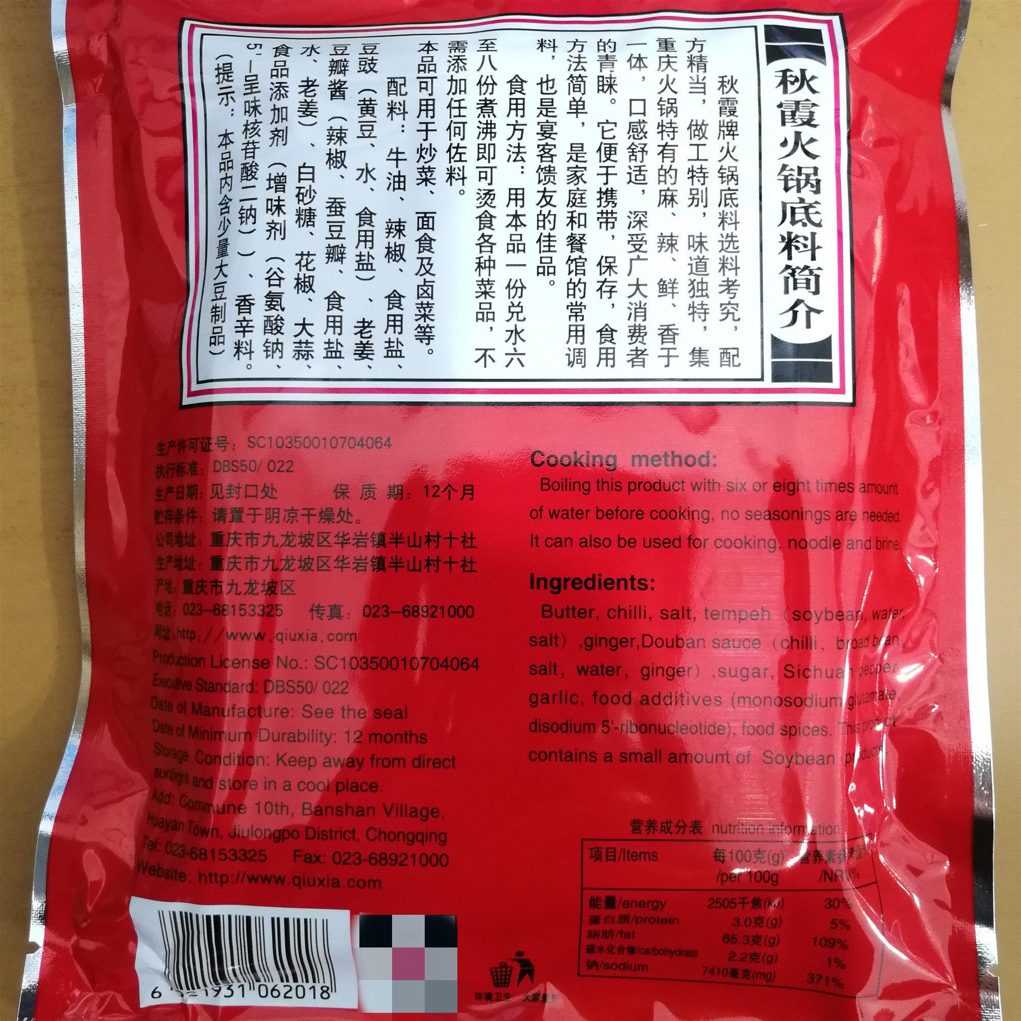 Qiuxia hot pot soup base 400g * 3 bags Qiuxia hot pot soup base 400g * 5 bag Qiuxia hot pot soup base 400g * 10 bag Qiuxia hot pot soup base 400g * 30 bag