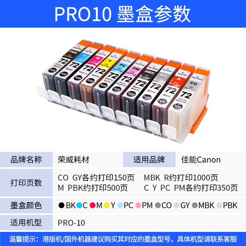 PGI-72 10-color set of finished products (including chip and ink) PGI-72 Photo Cyan PC PGI-72 Matte Black MBK PGI-72 Gray