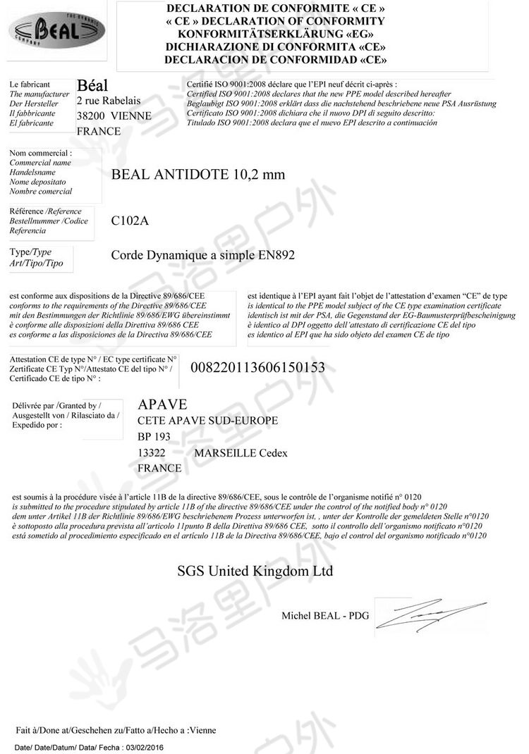 French brand Beal power rope Antidote10 2mm oxtail rope outdoor cave climbing climbing ice mountain climbing