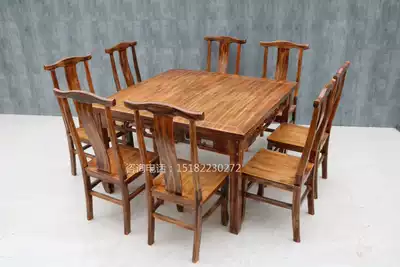 Carbonized antique dining room Hotel solid wood dining table and chair combination Leisure farm outdoor table and chair Eight immortals table square table and chair