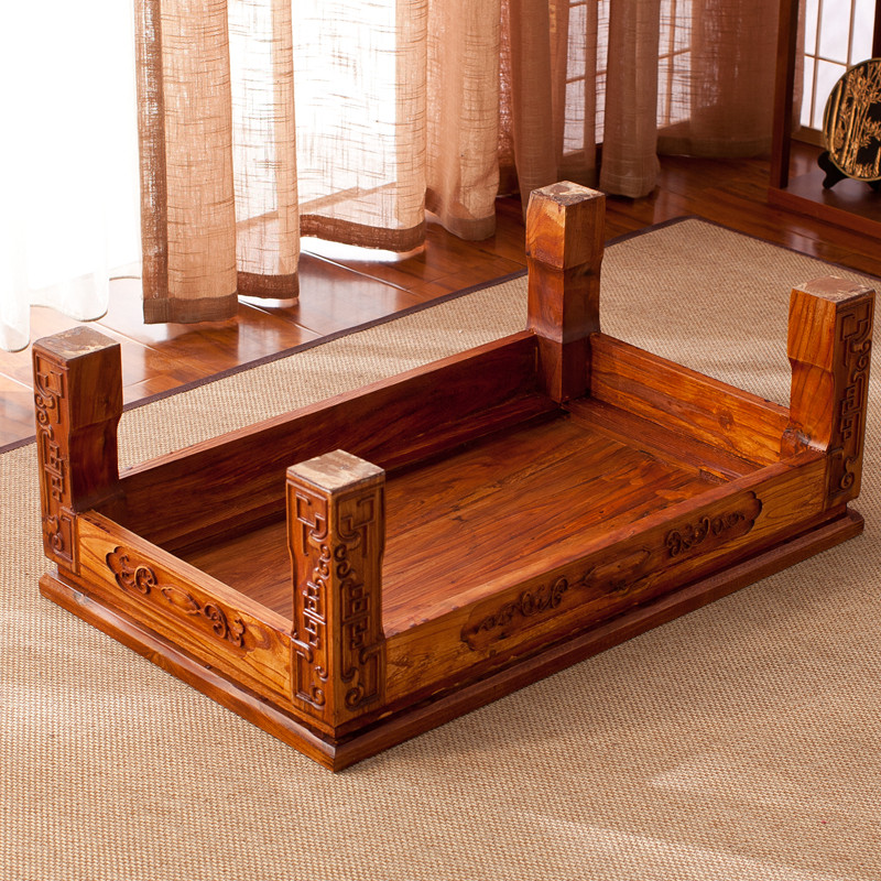 Carved old elm solid wood tatami coffee table bay window table solid wood small table balcony small coffee table floor kang table