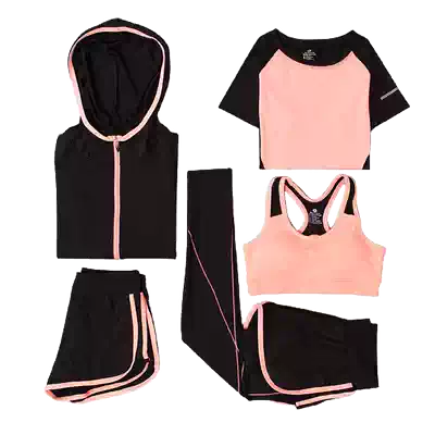 A (orange arc five-piece set) A (dark gray arc five-piece set) Pink five-piece set A (black five-piece set) A (white five-piece set) Dark gray and black vertical striped jacket five