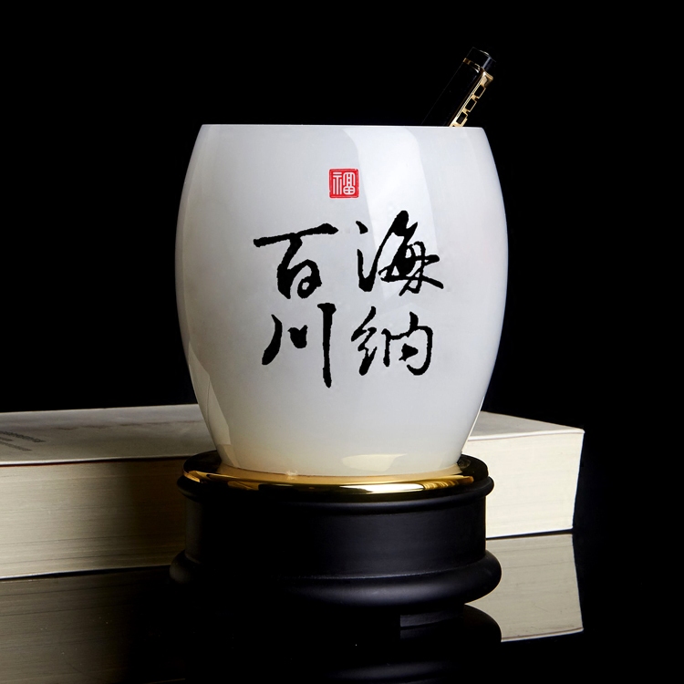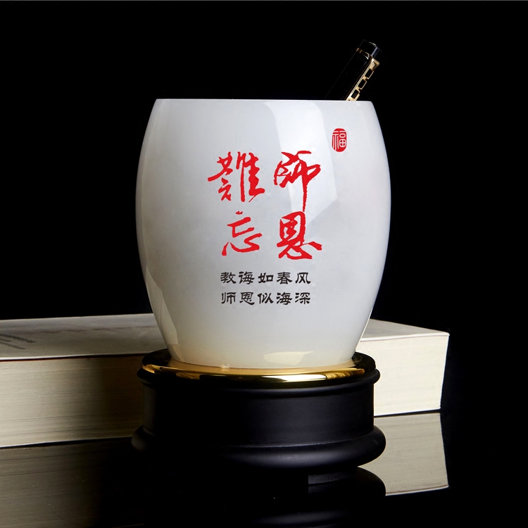 Send teacher glass jade high-end pen holder decoration classmate reunion anniversary commemorative company retirement gift custom LOGO