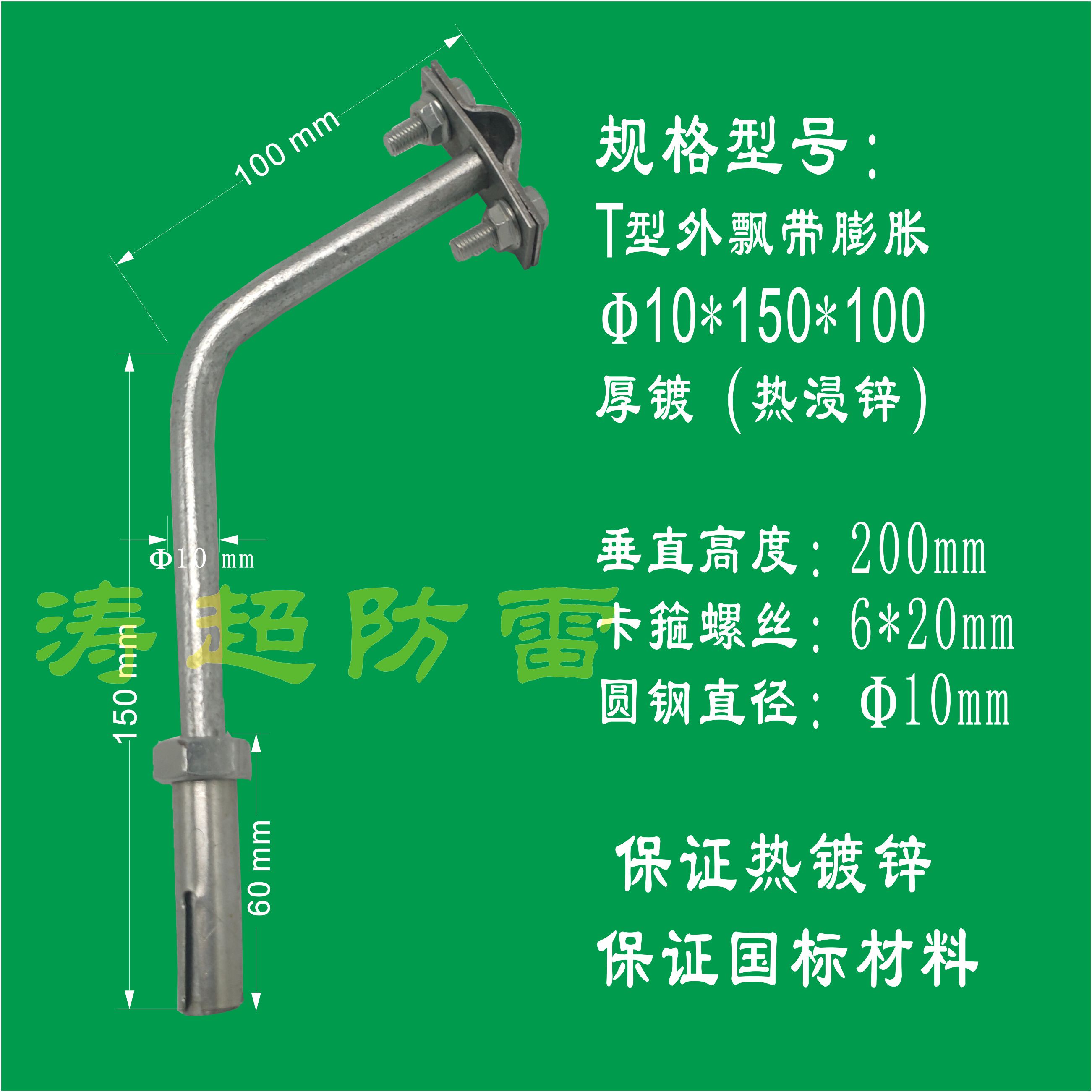 T-type lightning protection bracket hot-dip galvanized round steel lightning protection bracket lightning protection support card for lightning protection with lightning-proof support card