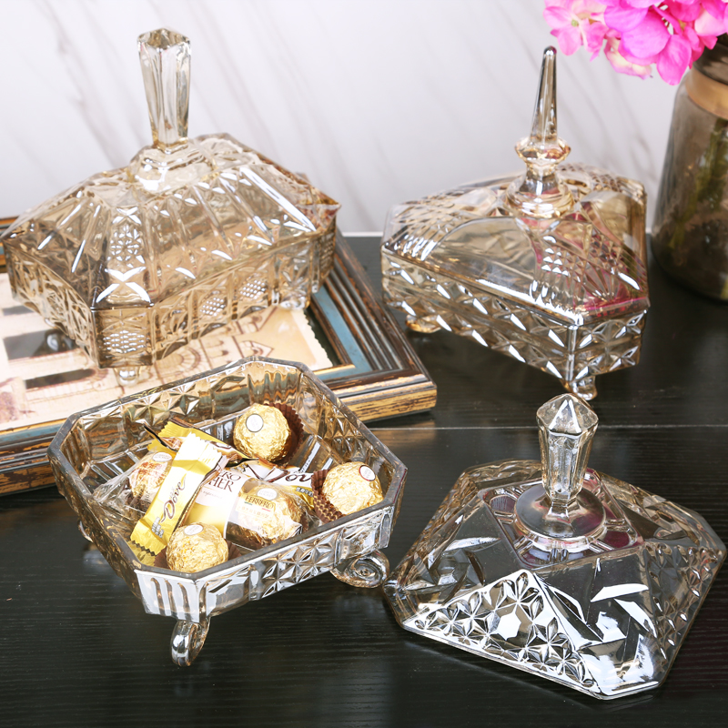 European luxury crystal glass sugar jar Storage jar Dried fruit candy snack jar with lid Large coffee table decorative decoration