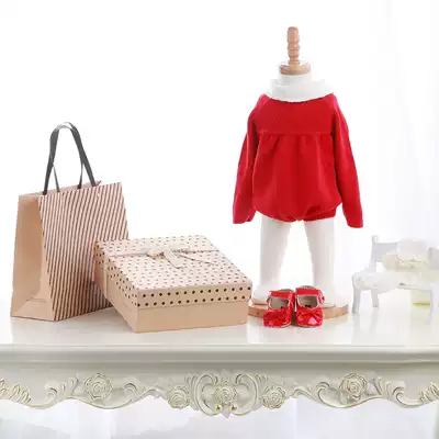 Spring and Autumn Baby Gift Box One-piece Crawling Girl Baby Pure Cotton Knitted Sweater Dress Newborn Clothes High-end Gift Bag