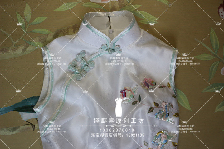 Handmade buckle Republic of China style dress Handmade Su embroidered Ao Dai Elegant annual meeting star of the same embroidered cheongsam skirt