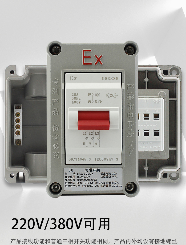 Industrial explosion-proof lighting switch 220V single and double cut EX fire security wall five-hole socket surface mounted with cassette