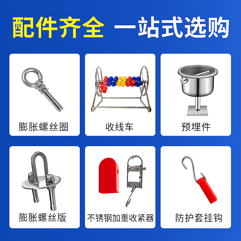 Spiral diameter 6 cm - Nylon rope Per meter spiral type diameter 9 cm - Nylon rope per meter Maple leaf type diameter 11 cm - Nylon rope Per meter six diamond diameter 12 cm - Nylon rope Per meter six diamond diameter 15 cm - Nylon rope Per meter Wind model diameter 15 cm - Nylon rope Per meter Wind model diameter 15 cm - Nylon rope Per meter spiral diameter 6 cm - Steel wire per meter spiral diameter 9 cm - Steel wire Per meter Maple leaf diameter 11 cm - Steel wire Per meter Six diamond diameter 12 cm - Steel wire Line Per meter six diamond diameter 15 cm - Steel wire Diameter per meter wind model 15 cm - steel wire per meter safety float line every meter full 25 meters to send hook (limited time free) nylon rope upgrade steel wire stainless steel pull hook with protective sleeve pull hook plastic tightener stainless steel weight tightener embedded parts lane line receiving expansion screw ring (no embedding) expansion screw plate (no embedding)