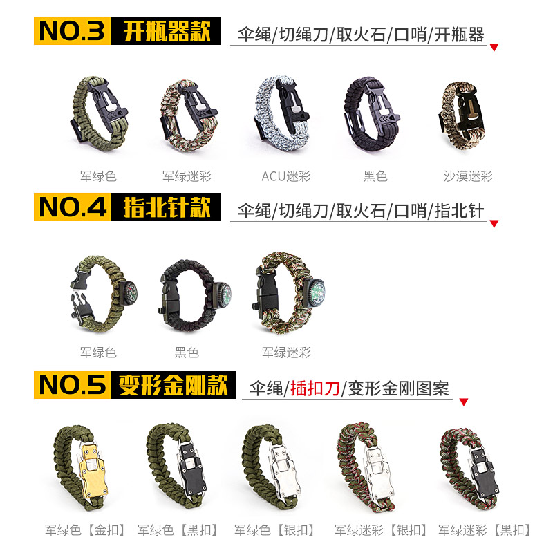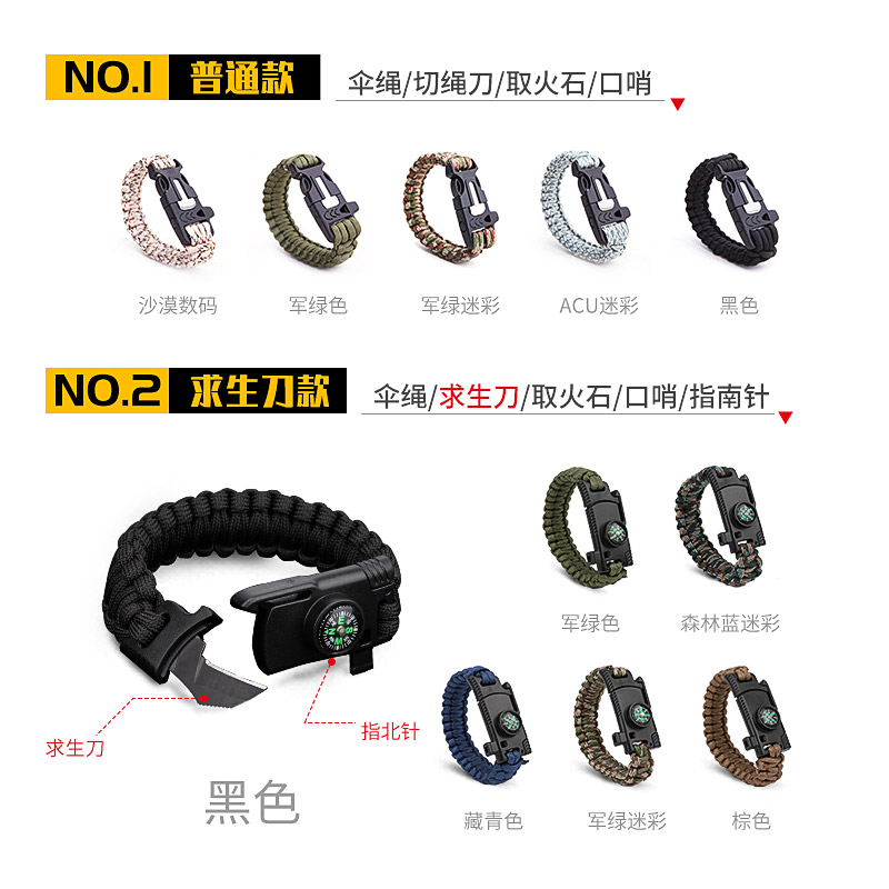 Outdoor Army Meme EDC Umbrella Rope Hand Refining Knife Multifunction Survival Tactical Hand Ring Battle Wolf 2 perimeter anti-body portable bag equipment