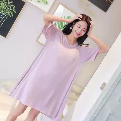 Spring and summer V collar Mordale cover belly dress women Large Size 200kg fat mm thin base short sleeve Medium-length dress