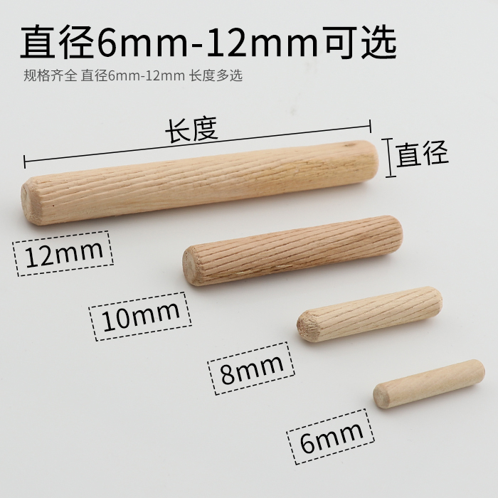 Round wood wood plug wood stick wood tenon stick twill wood nail wedge wood bolt furniture connector hardware accessories 6-12 cm
