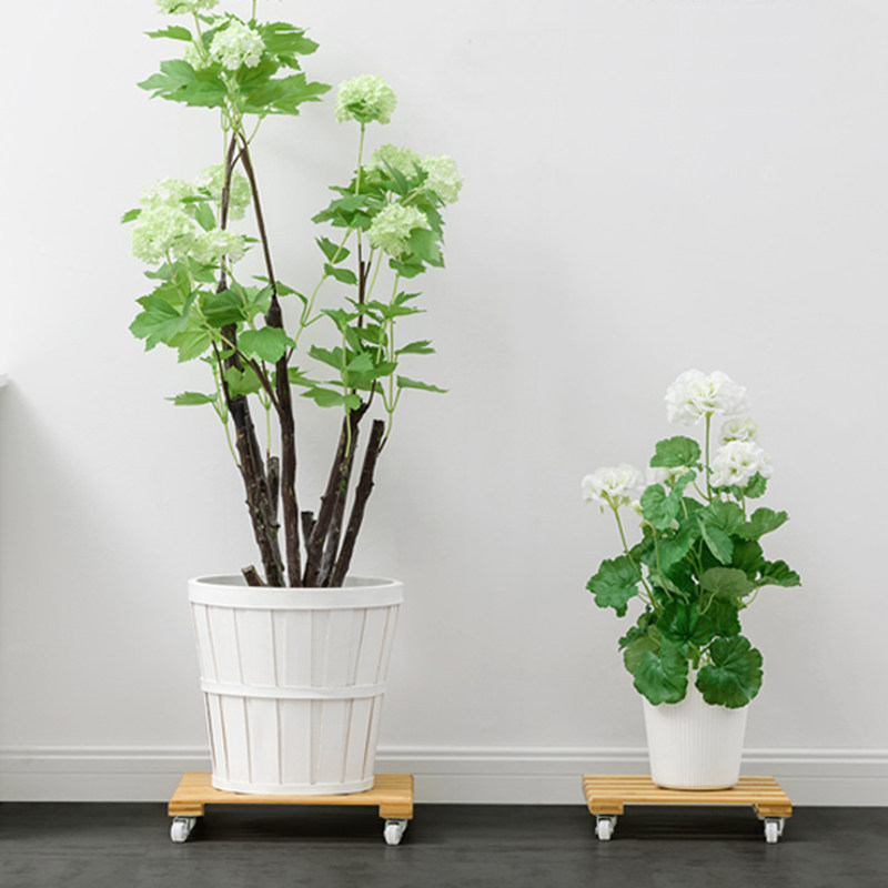 Solid wood large flower pot tray Nanzhu removable flower holder with universal wheel potted base chassis thickened small flower stand