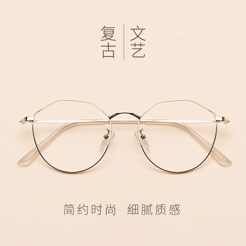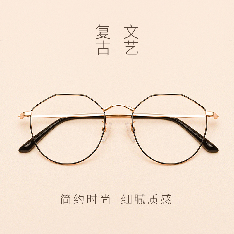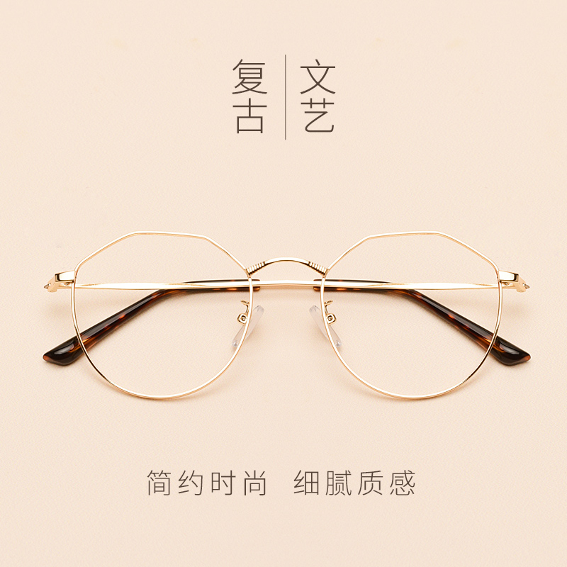 Irregular personality glasses frame women's Korean version of the tide ultra-light myopia glasses men's rose gold glasses frame flat mirror plain mirror