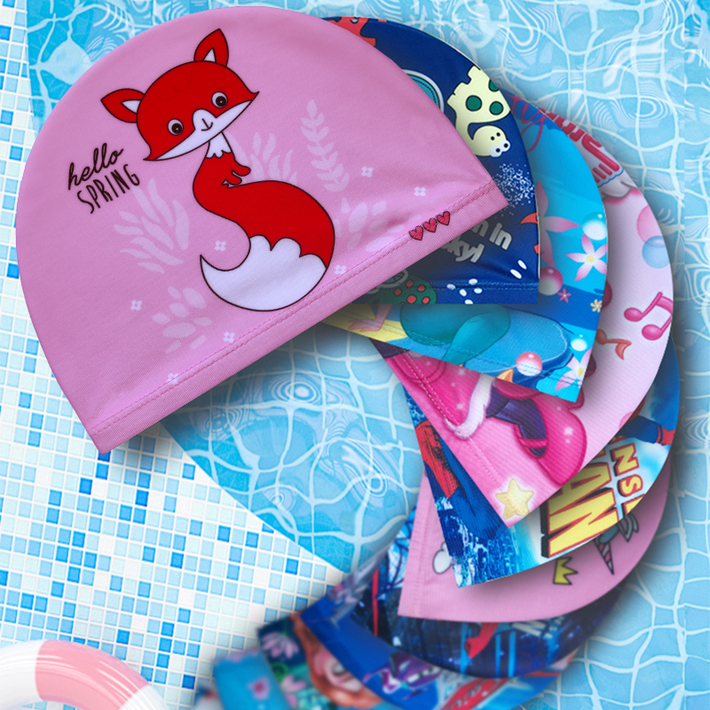 Children's Cloth Cap Swimming Cap Girls Boys Cute Cartoon Pattern Baby No Head High Elastic Swimming Cap Goggle Set