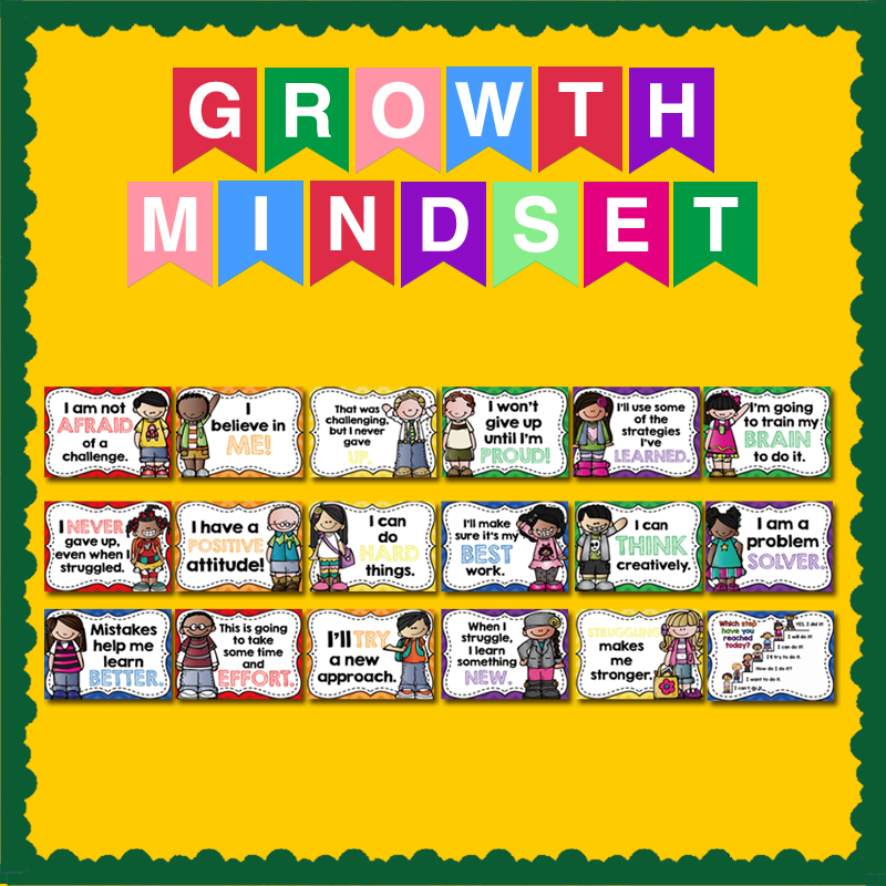 Full set of 18 growth mindset posters with poster title border blue-butadiene growth mindset felt title