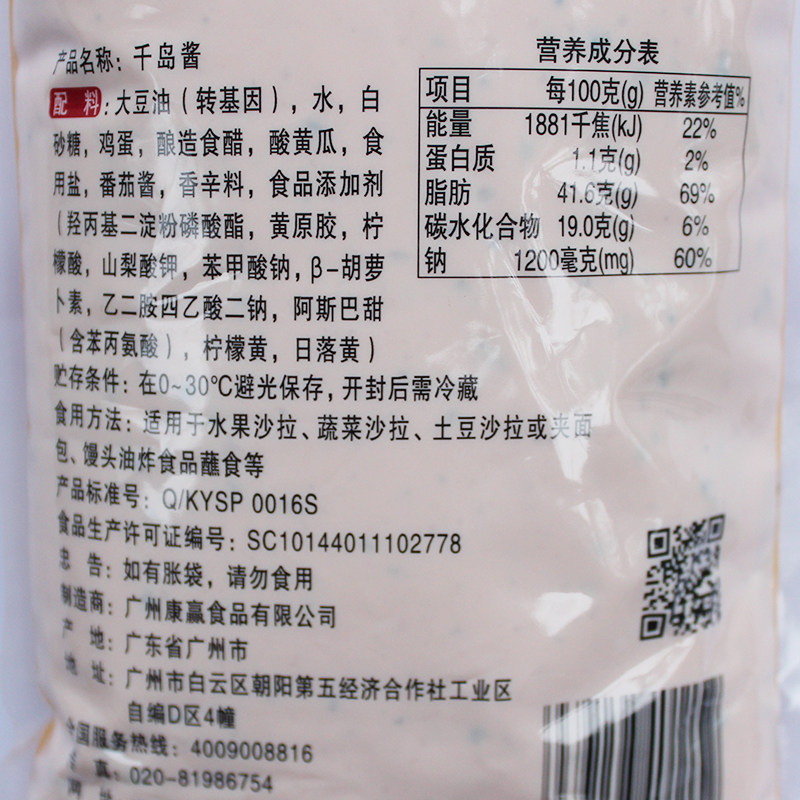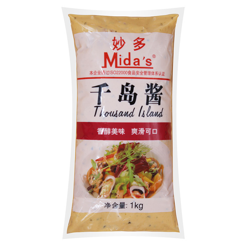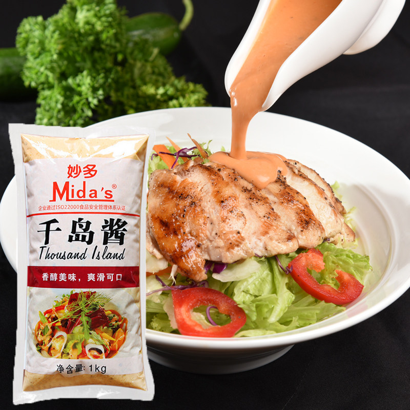 (Whole box)Miaoduo Thousand Island sauce 1kg*12 bags bagged fruit and vegetable salad dressing Sweet salad dressing