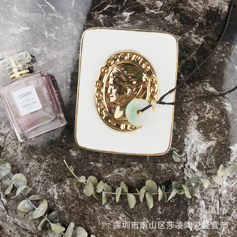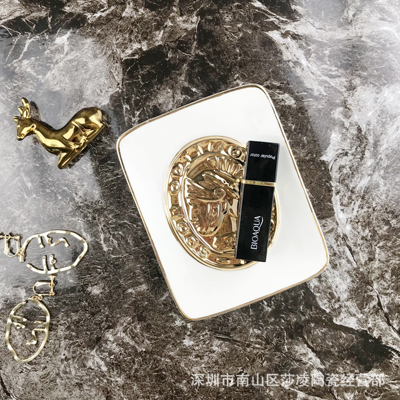 Nordic Gold Figure Ceramic Storage Tray Ceramic Ornament Jewelry Tray Soap Dish