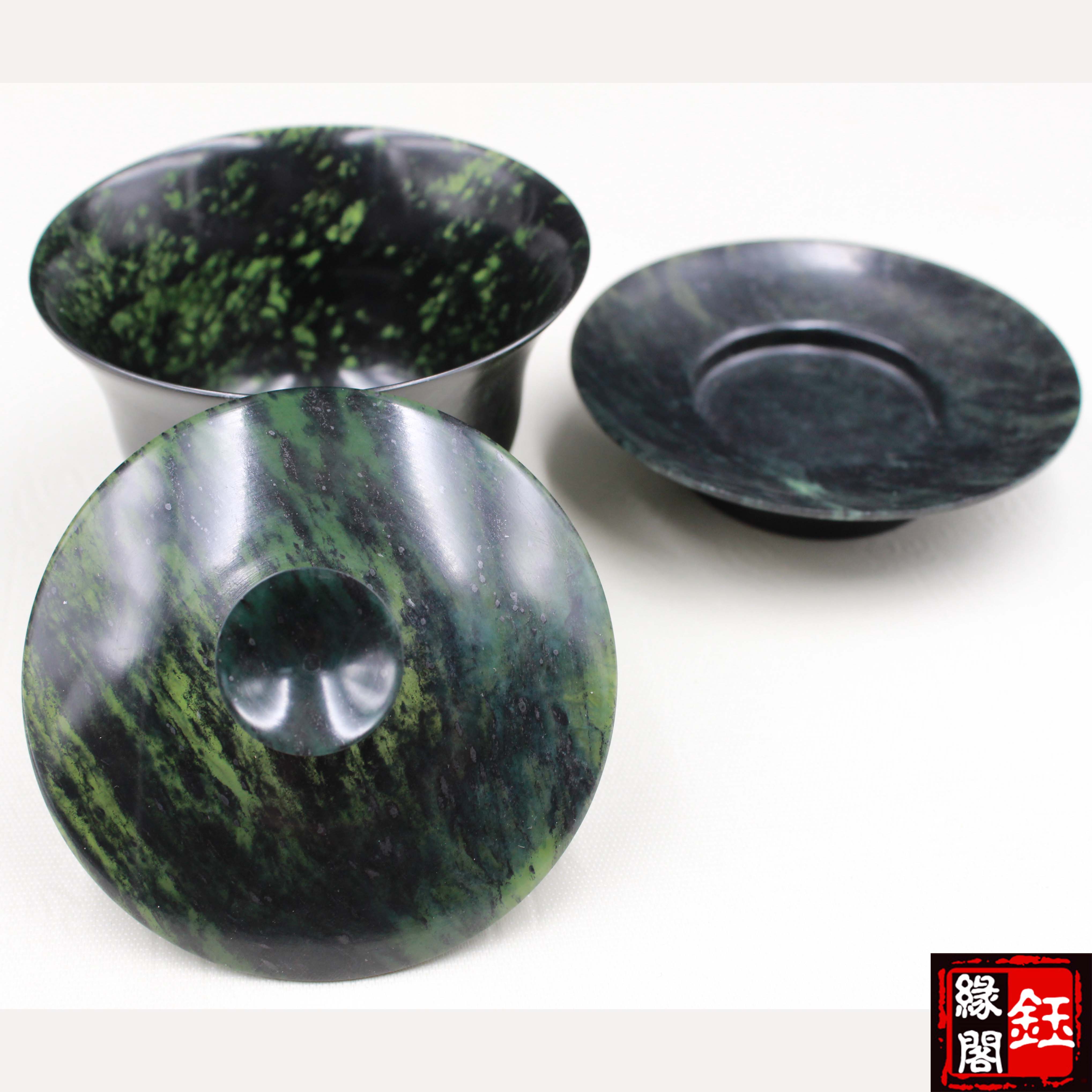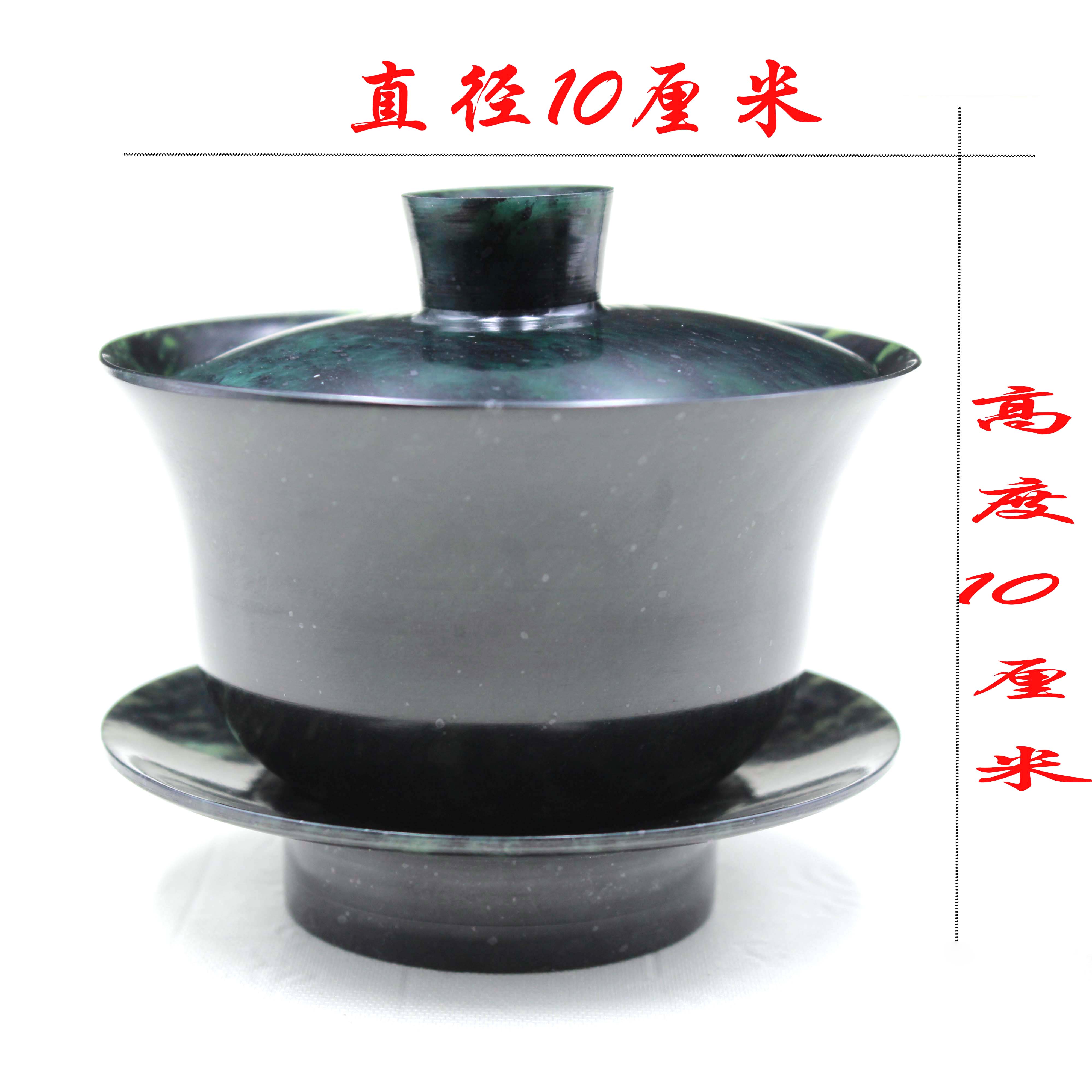 Natural Ink Jade Magnesexual Health Care Cover Bowl Tea Bowl Tea Bowl Jade Bowl Tea Cup Wine Spring Night Light Cup Qi Lian Ink Jade Gansu Wushan