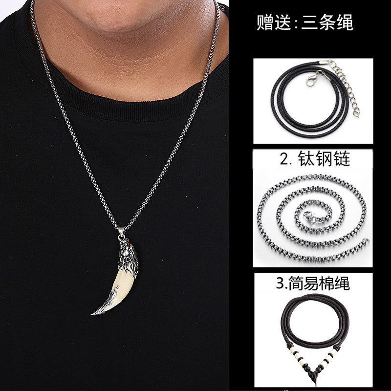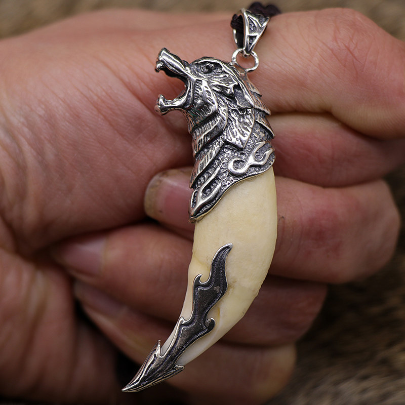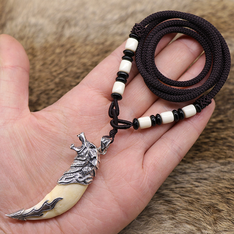 Bag Silver Wolf Tooth Men Necklace Real Tooth Tibetan Mastiff Pendant Pure Silver Braces Black Dog Tooth Original Design Couple Pendant