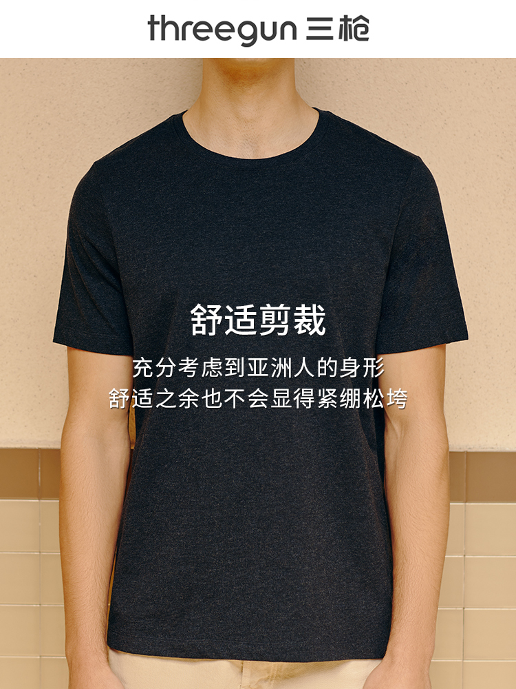 Three guns men's T-shirt cotton crew neck loose breathable sports leisure base underwear undershirt cotton men's short sleeve