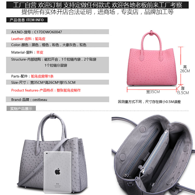 cestbeau imported ostrich leather girl bag genuine leather single shoulder handbag with an ostrich leather handmade-Taobao