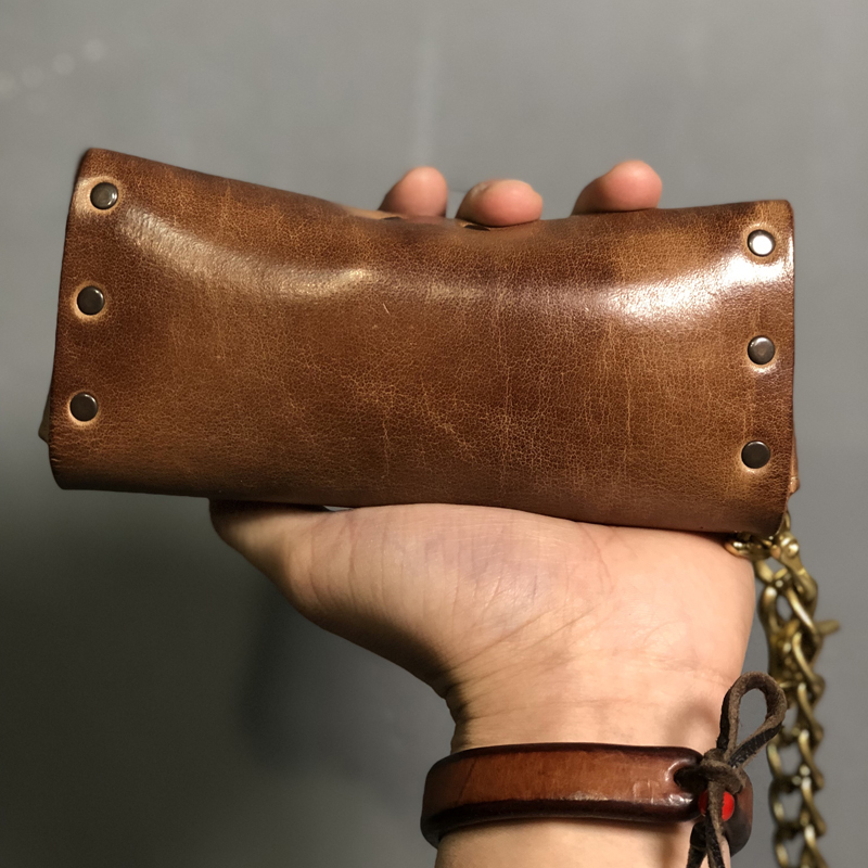 New Head Layer Leather Retro Rivet Glasses Case Plant Tannic Bull Leather Rivet Tree Paste Leather Glasses Bag Art genuine leather