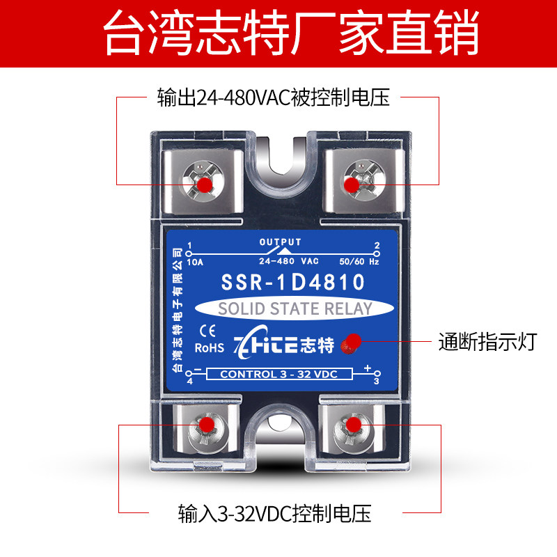 Taiwan's Zhite Solid State Relay Module Single-phase Small 24v SSR DC Control Exchange D4810 220v