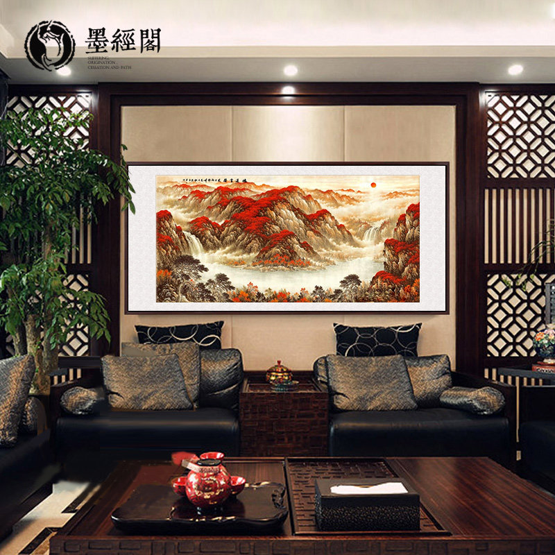 Hongyun When the head goes back to ancient China painting landscape painting Feng Shui Leaning on Mountain Drawing Living Room Decorative Paintings and Property Office Word Paints
