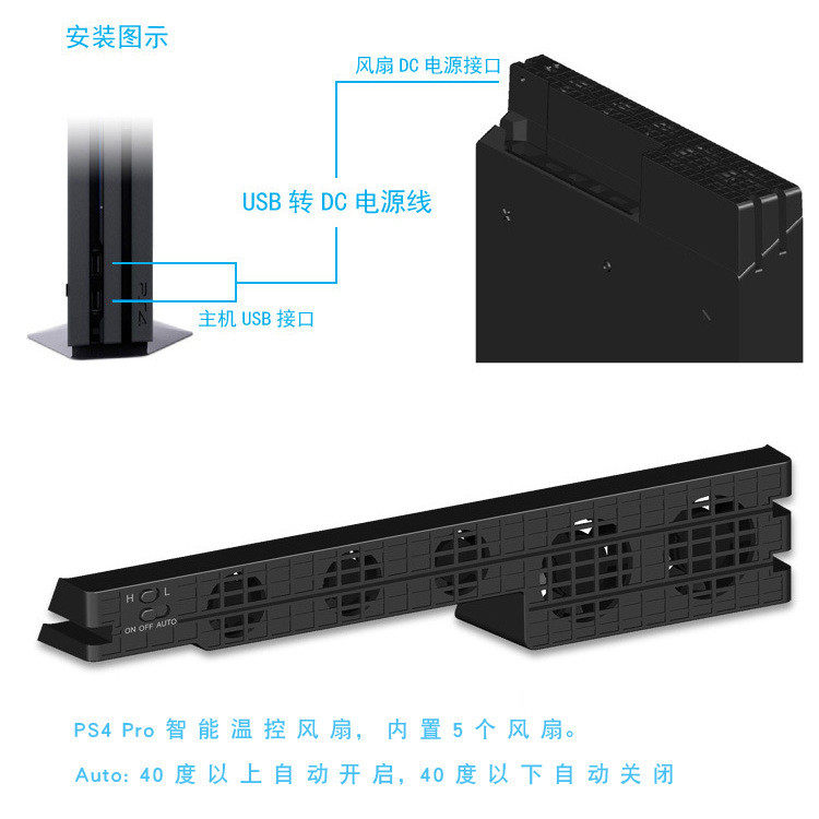 PS4slim host fan Pro temperature control cooling fan Automatic constant temperature radiator Rear fan with