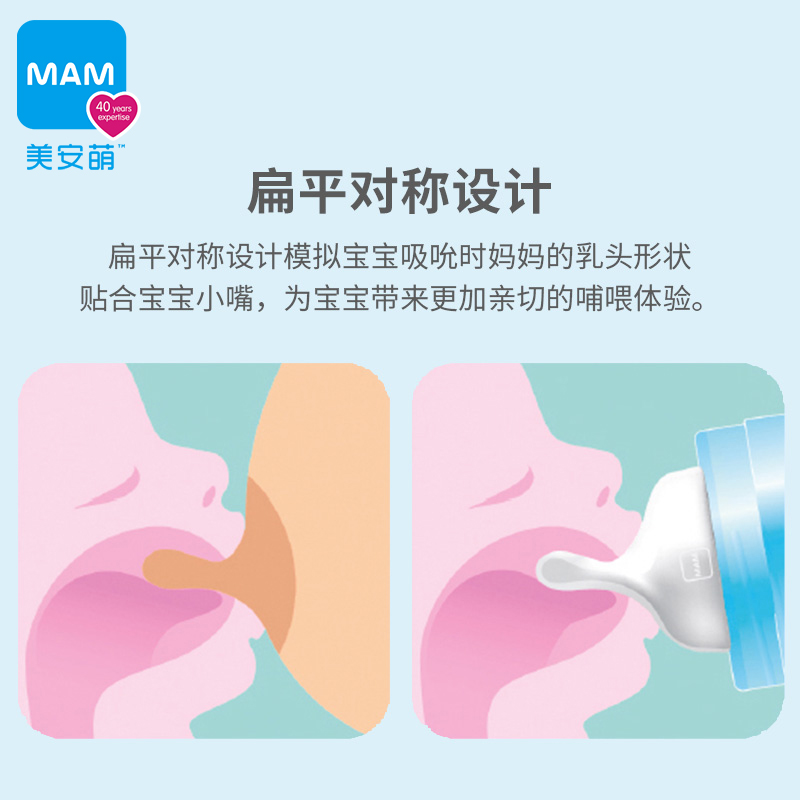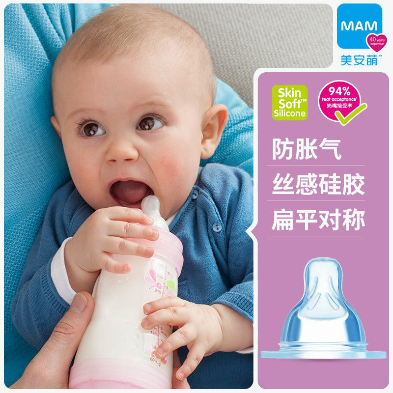 MAM Meian Meng wide mouth diameter universal super soft anti flatulence simulation breast milk real sense baby baby bottle mouth 2pcs