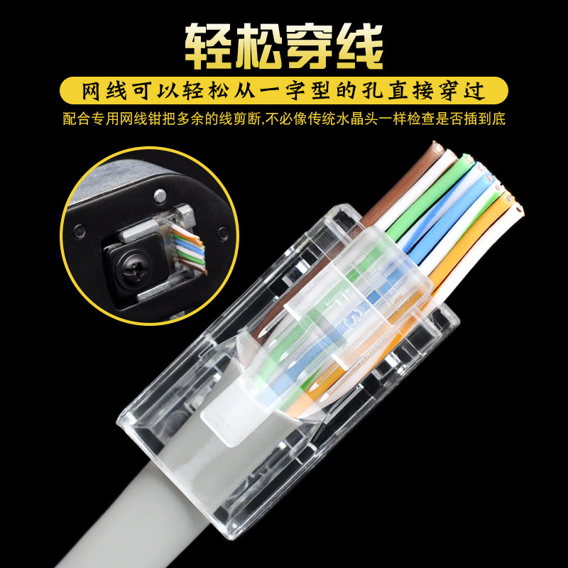 CNCOB perforated super five crystal head through hole Cat5E RJ45 8P8C network line connector network plug
