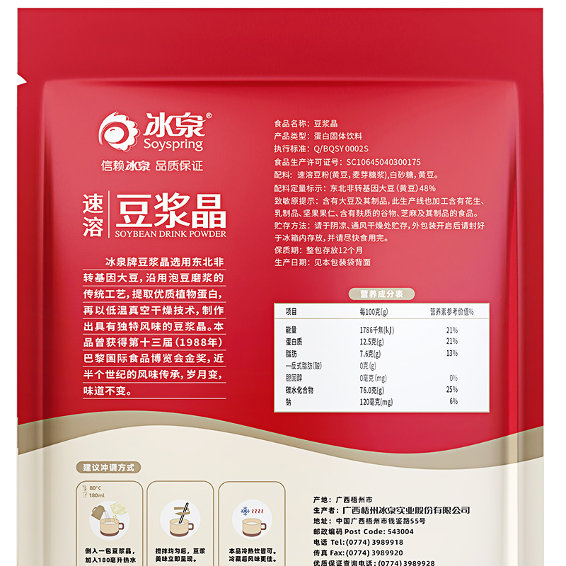 Ice Springs Soy Milk Crystal 300g Soy Milk Powder Nutritional Breakfast Foods Instant brewing Beverage Non-genetically modified Breakfast Coffee Companions