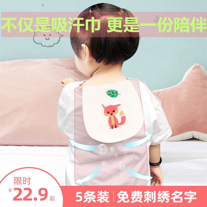 Children's sweat-absorbing towel pure cotton kindergarten embroidered name baby sweat-separating towel men and women baby sweat towel cotton pad back summer thin