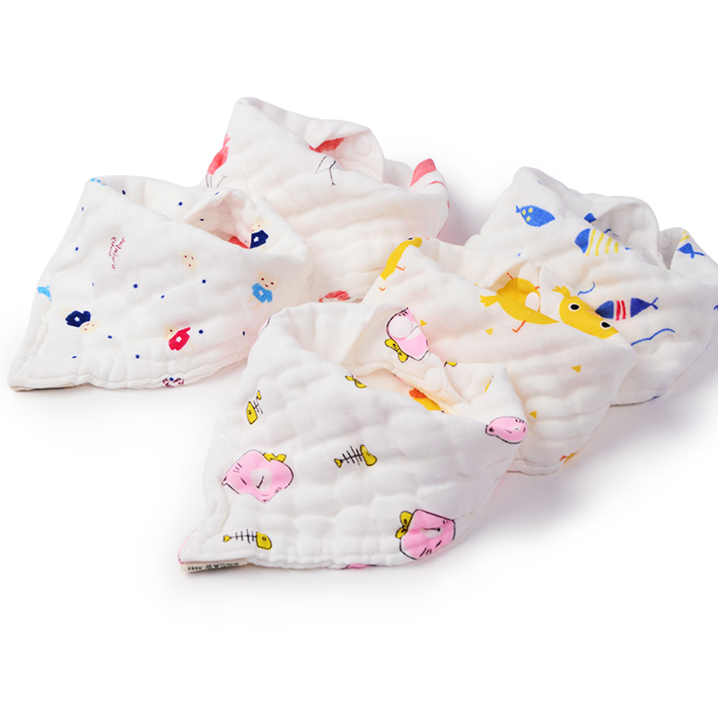 Nanice Baby Gauze Triangle Towel Pure Cotton Saliva Towel Baby Bib Newborn anti-spitting milk by buckle