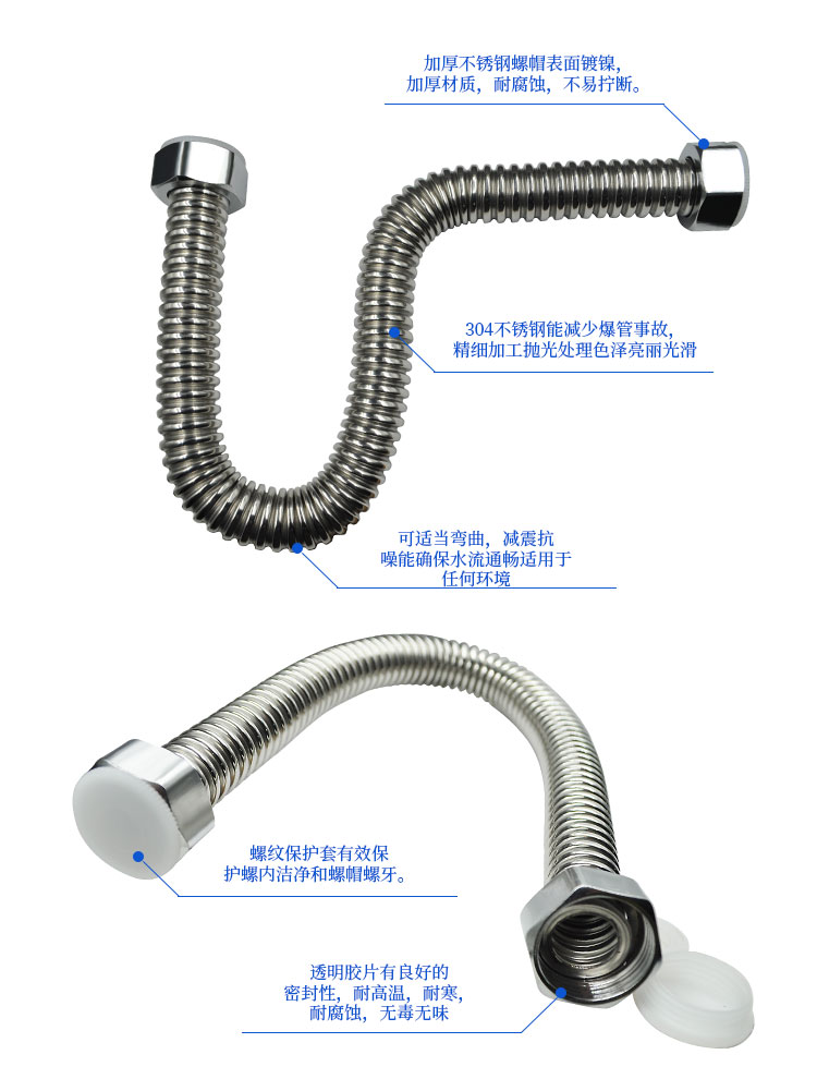 304 stainless steel bellows 6 sub-water inlet pipe hot and cold explosion protection hose water pipe water heater into the water outlet pipe