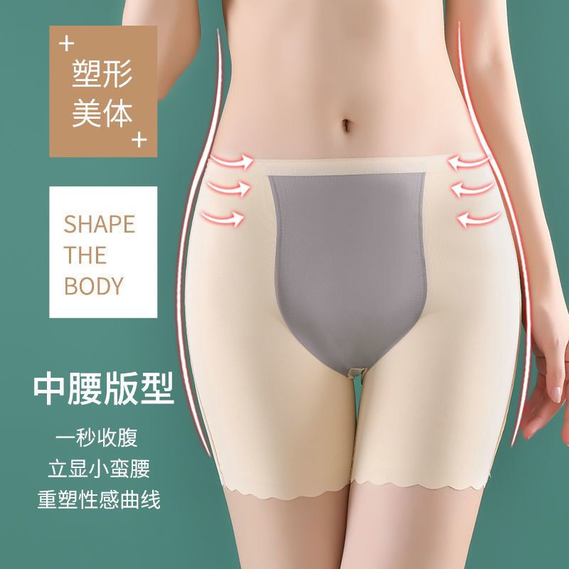 2 packs of underwear women's ice silk seamless one-piece mid-waist high elastic boxer safety pants large size shorts summer thin