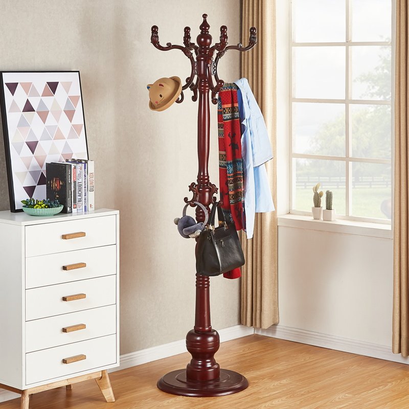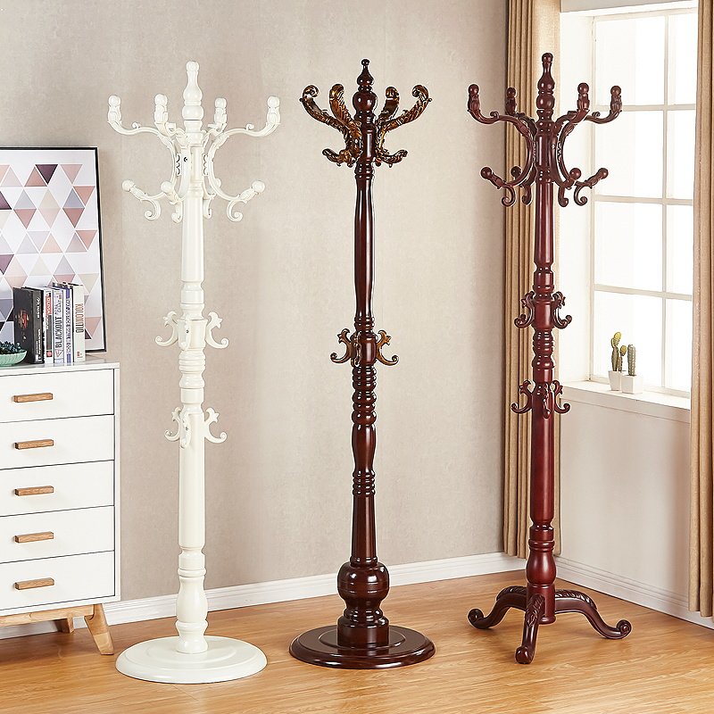 Solid wood coat rack Floor hanger European style hanger Household living room single rod clothes rack Clothes rack