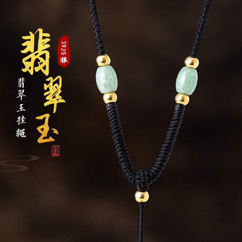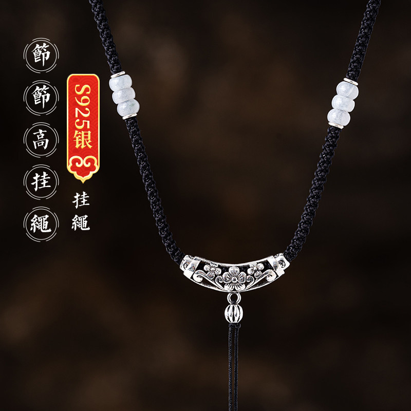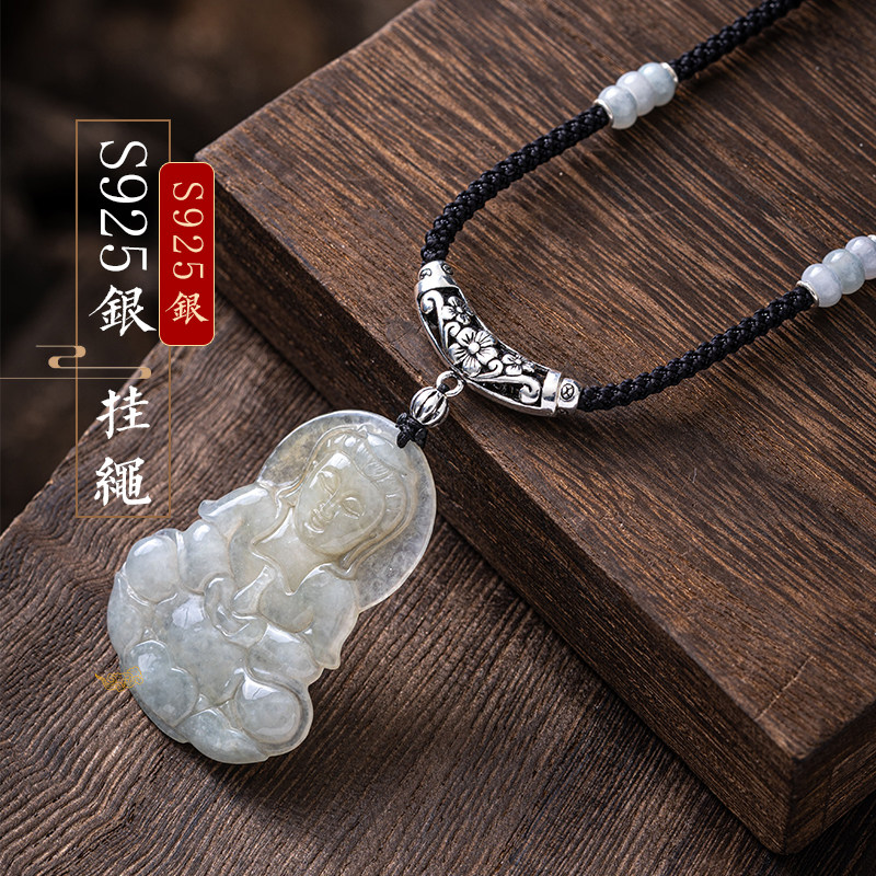 3 mm thick 925 sterling silver pendant lanyard jade jade pendant Guanyin Buddha safety buckle adjustment sweater necklace rope