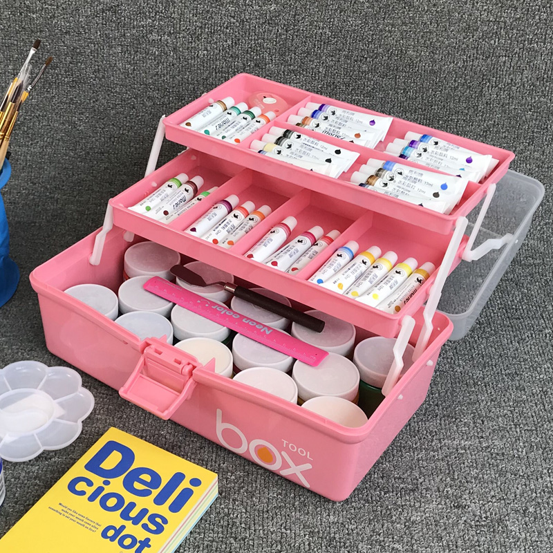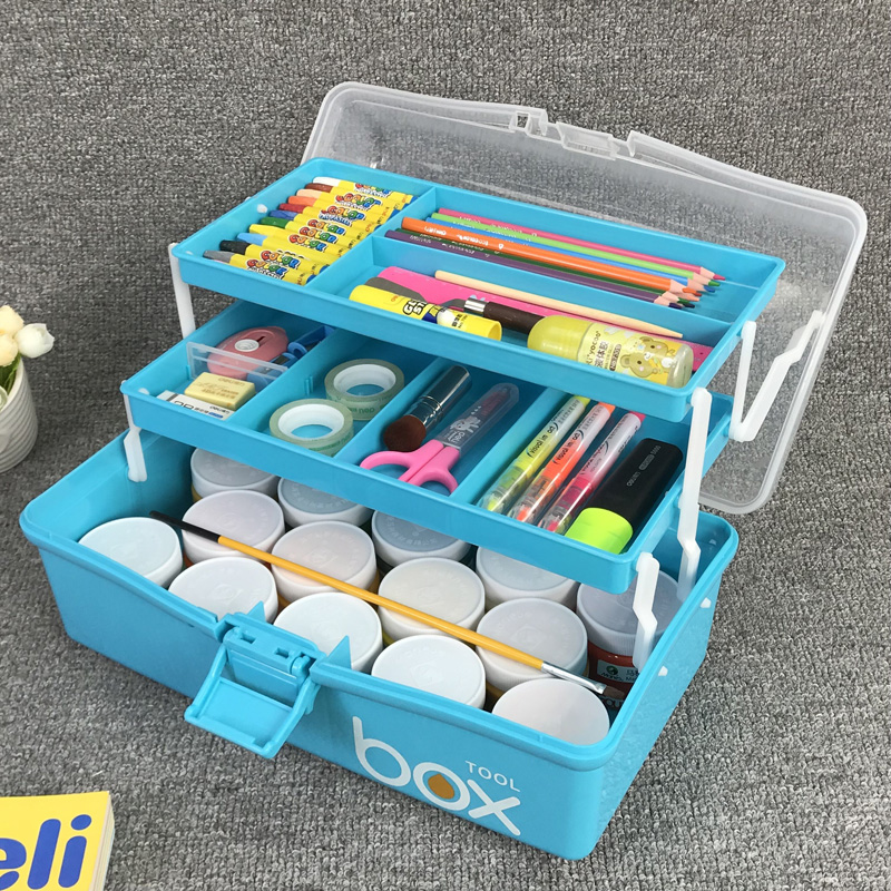Fine Art Supplies Toolbox Portable Large Three Floors Multifunctional Drawing Containing Box Elementary Students Water Powder Painting Box