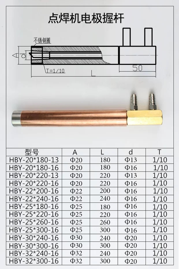 Resistance welding electrode grip pole spot welding machine with water copper rod cooling electrode copper rod chrome zirconium copper electrode grip pole