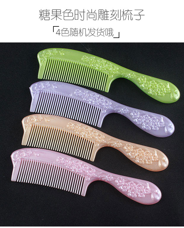 Pattern engraving comb Fashion candy color plastic portable fold constantly durable and antistatic home with long hair comb