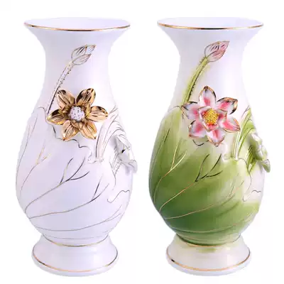 Ceramic relief flower vase for Buddha Guanyin water purification bottle Lotus bottle in front of the Buddha Buddhist supplies Buddha hall Home furnishing Buddha