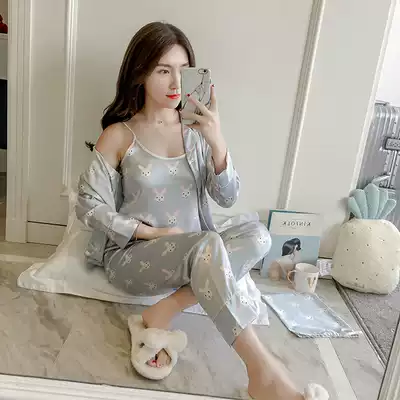 Cloth bag five sets spring and autumn pajamas women long sleeve cute suspenders simulation Silk Home clothing women Summer