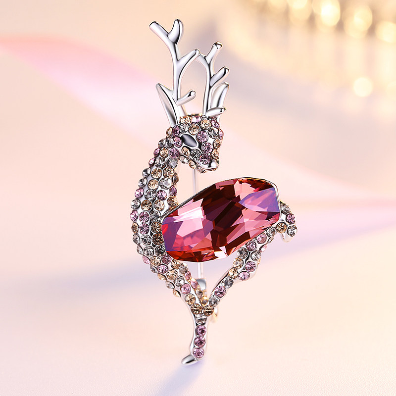 Fawn brooch women's light luxury high-grade corsage Zircon evening dress sweater jacket accessories Birthday gift to girlfriend
