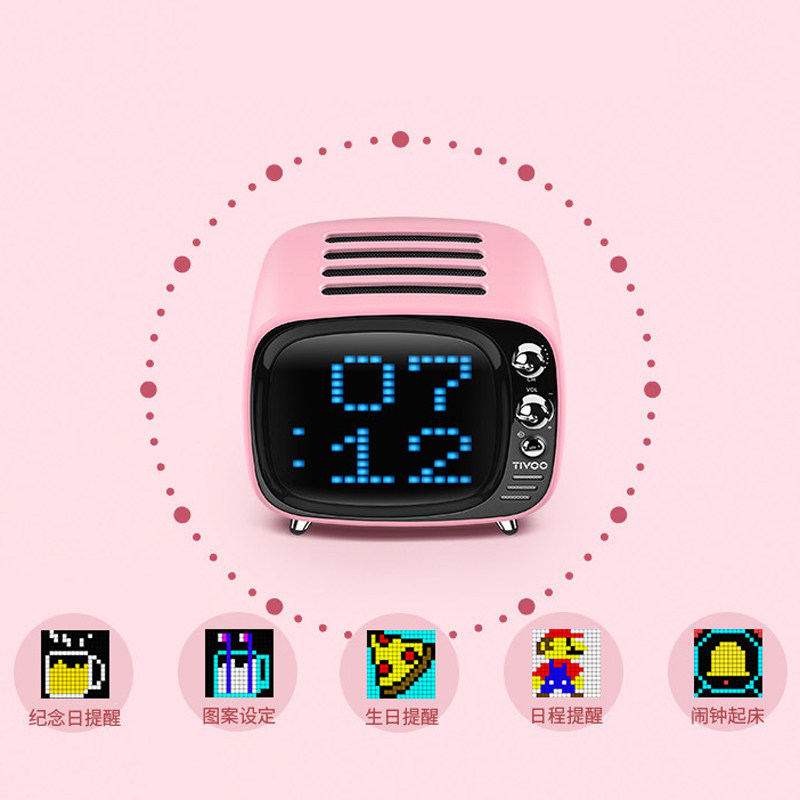 divoom TIVOO Pixel Bluetooth speaker small TV wireless mini cute alarm clock watch White to send girlfriend