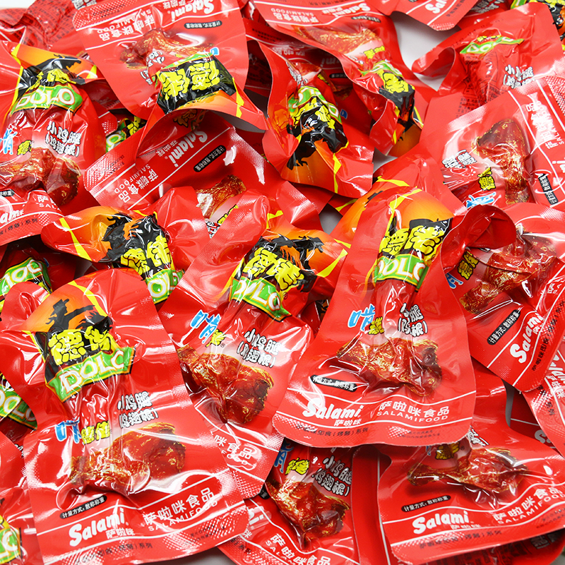 Salami nibble with grilled little chicken legs, spiced salads, little chicken legs scattered, says 500g grams of ready-to-eat salami