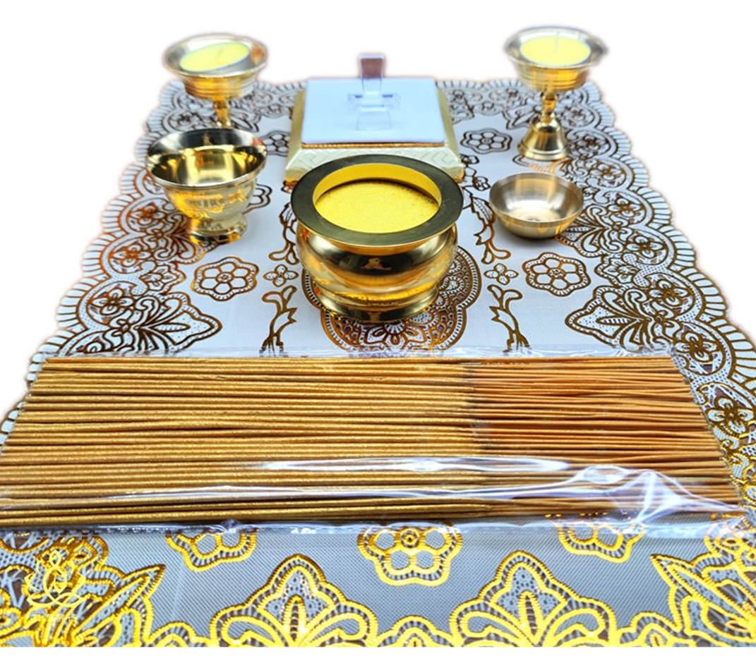Thailand's new golden bronze incense stove lamp holder Buddha's fragrant water glass is dedicated to the combined suit sending gift without fade