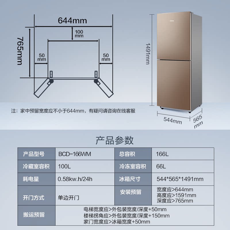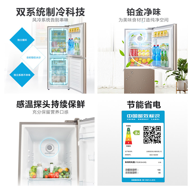Midea refrigerator double door BCD-166WM air-cooled frost-free household small maternal and child energy-saving bass refrigerator